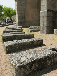 Not far away we came across the curious village of Quarré-les-Tombes. Curious because excavations in the churchyard discovered over one hundred empty Merovingian coffins hewn from solid limestone and dating from the 6th or 7th century. None would seem to have been used so why and how do they come to be there? They now lie side by side all around the 16th century church, many broken or cracked. There is something disquieting about them. One theory is that the village made coffins speculatively and this was a 6th century storage depôt! Another theory is that the acidity of the soil destroyed the bodies whilst the coffins remained intact. Both seem unlikely explanations. The stone has been proven to come from a long distance away and it is unlikely it would have been transported to this particular village for shaping rather than having been worked at the quarry.