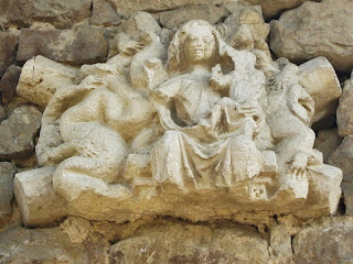 On several of the village houses we noticed fragments of carved masonry built into the walls of the old farm buildings. The village also had a handsome lavoir and we were intrigued by a proud and colourful display of badges won at agricultural shows over many years by a local farmer for his herd of Charolais cattle.