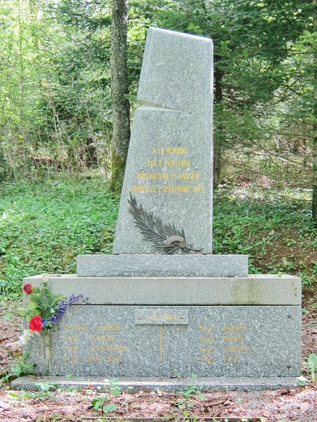 Returning towards Champagne we diverted along a road we’ve never before explored. Along a track through the woods we saw a sign directing us to a monument to aviators who died here in WW2. Eventually we found it. They had been dropping supplies to Resistance fighters and had come in too low, crashing into the trees. All were killed.