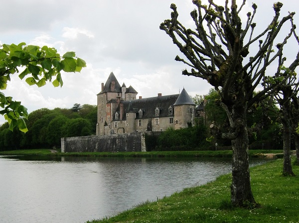 During the afternoon we passed through the village of La Chapelle-Angillon. Here we found ourselves on the bank of a wide lake with a château on the further shore. A signboard at the entrance to the village linked it with the writer Alain Fournier. The overcast drizzly weather evoked memories of reading many years ago Le Grand Meaulnes, with its dream-like evocations of the parties in the grounds of the lost domaine, deep in this part of the French countryside. So we stopped to soak up the atmosphere. The château was closed and has nothing to do with the “lost domain” – the title of the English translation. Although the village is the birthplace of Alain Fournier, where his father taught in the village school, we never actually discovered the house where he was born. The museum building in the grounds of the château seemed rather forlorn and neglected, and we gather from the web that there is dispute with the Maison-École du Grand Meaulnes at Epineuil-le-Fleuriel who claim that it is merely made up of a few panels from an exhibition dating from the 1980s and the association are taking legal action for abuse of the designation Musée Alain Fournier!