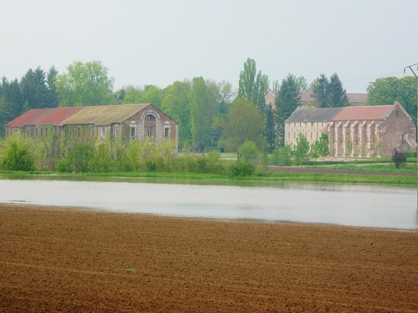 We stopped off at the mediaeval Abbé de Cîteux seen across flooded meadows, for lunch in Modestine. The abbey surroundings were underwater so we could not explore much. The abbey, which was the