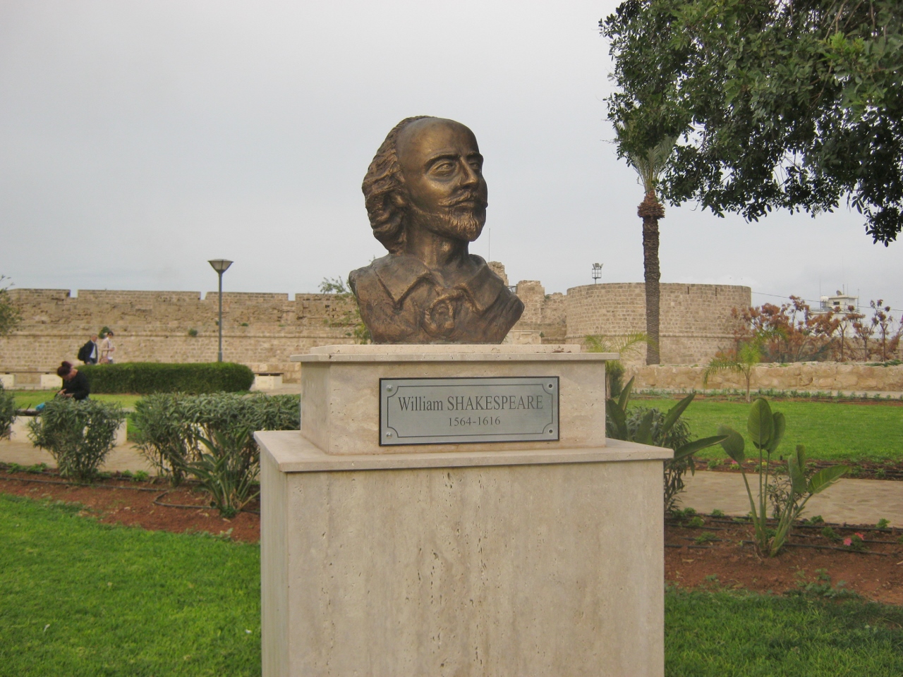 Bust of William Shakespeare in front of the Fortress and Othello gate, Famagusta, northern Cyprus